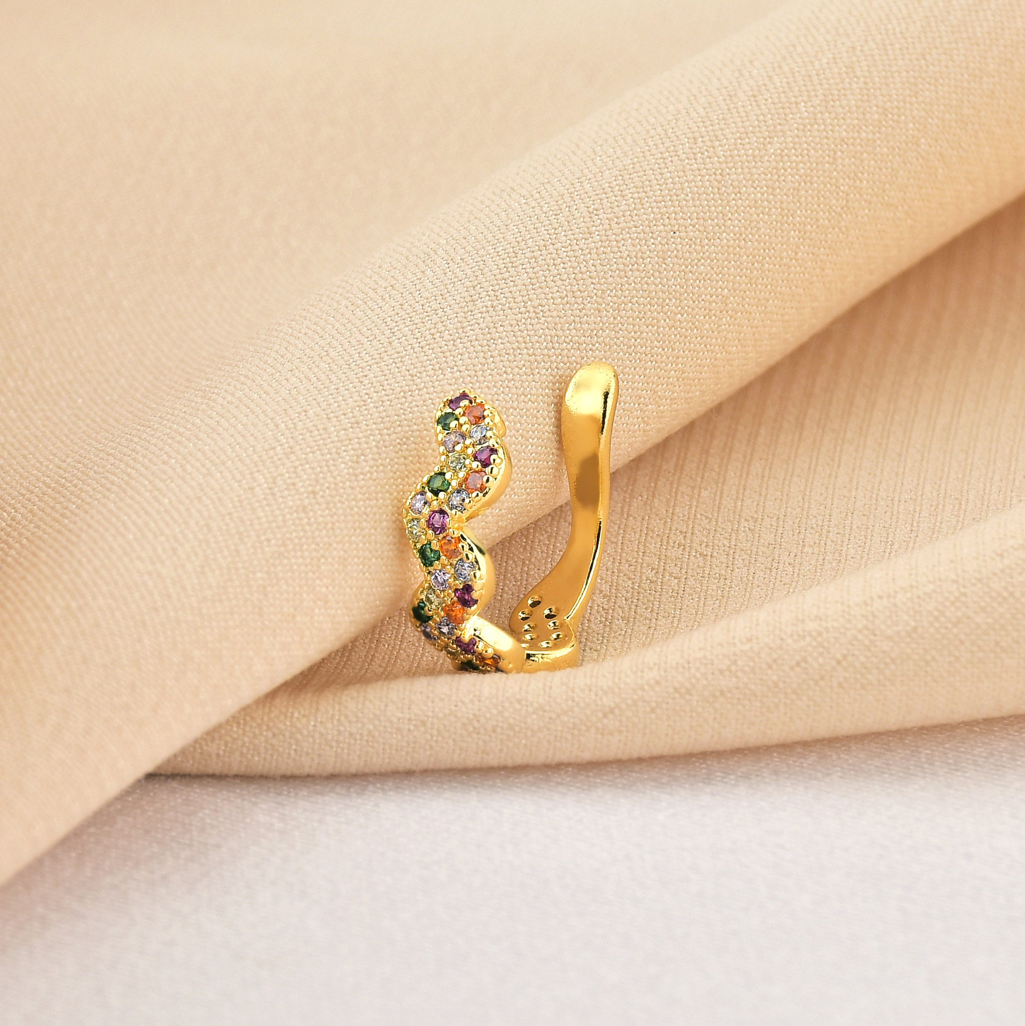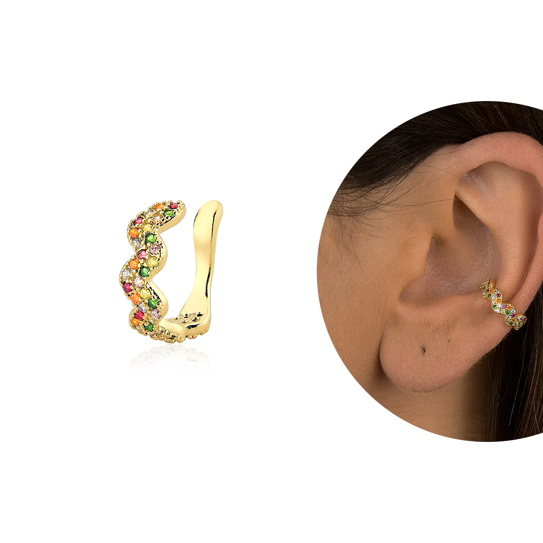 Piercing fake cravejado com micro zircônias coloridas – Banhado a Ouro 18k